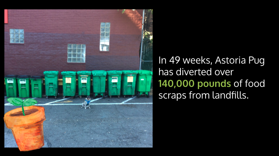 - For New Yorkers: if you live in an underserviced neighborhood that doesn’t have a food scrap drop-off site yet (and know a site that wants to host), fill out this form; Queens Botanical Garden is definitely looking for interested parties!