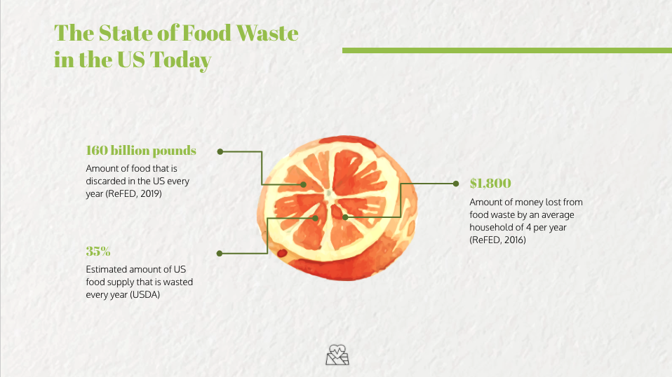 Throughout the presentation, we presented participants with stats and resources that they could come away and utilize in their efforts to prevent and reduce food waste at home. I’ve shared many of the data sources, additional learning material, and resources that participants have included throughout the presentation for your convenience. If there are other helpful materials that should be added, please feel free to reach out and make your recommendations!